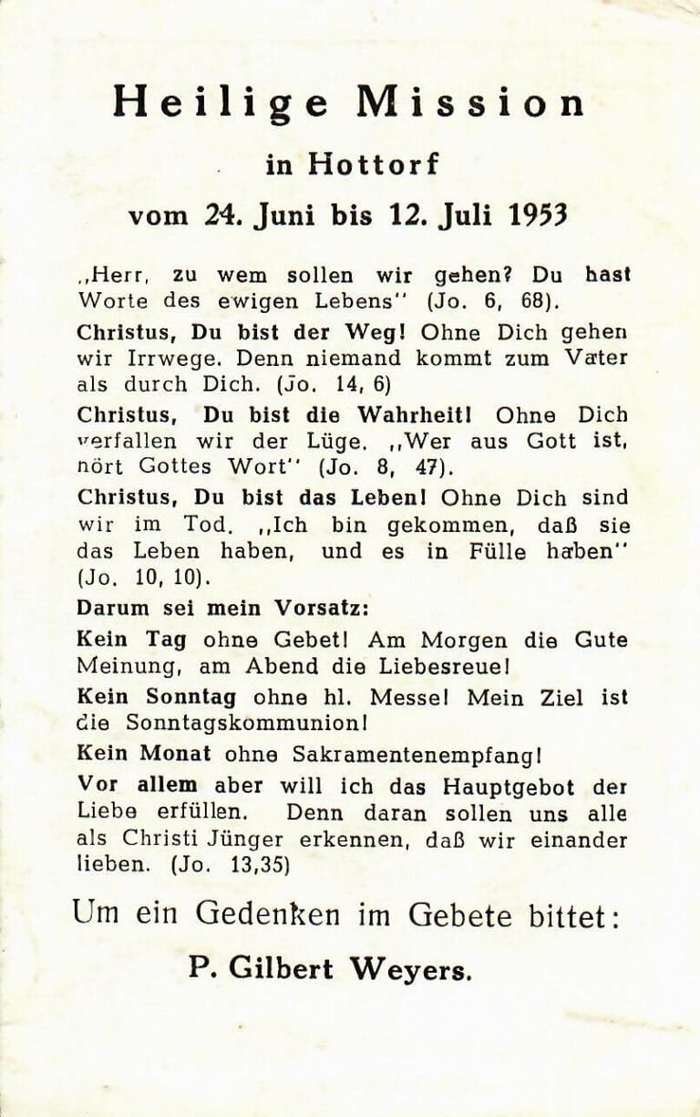 Heilige Mission 1953 24. Juni 1953 In regelmäßigen Abständen wird für die Anliegen der Mission gebetet, so auch vom 24. Juni bis 12. Juli 1953